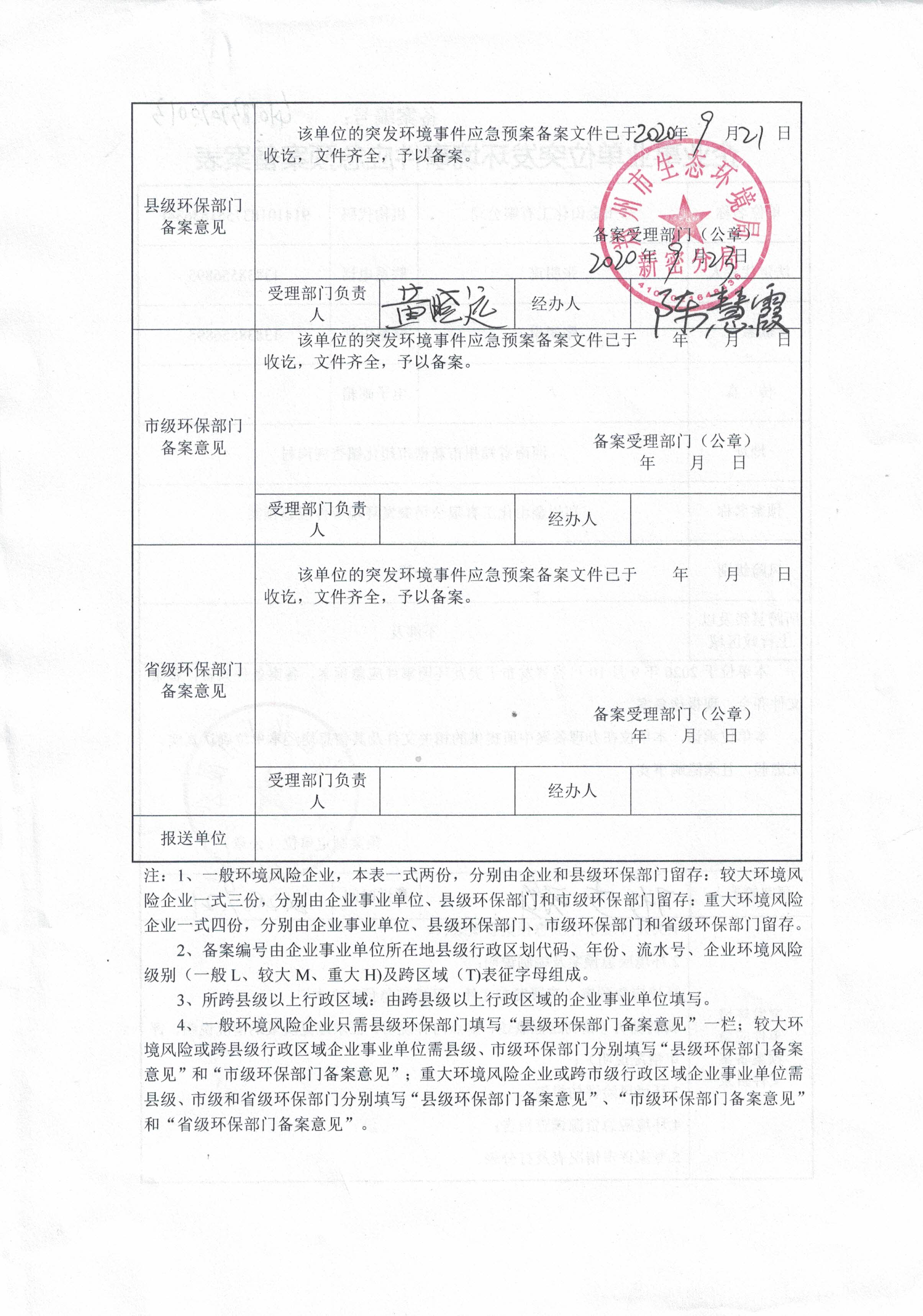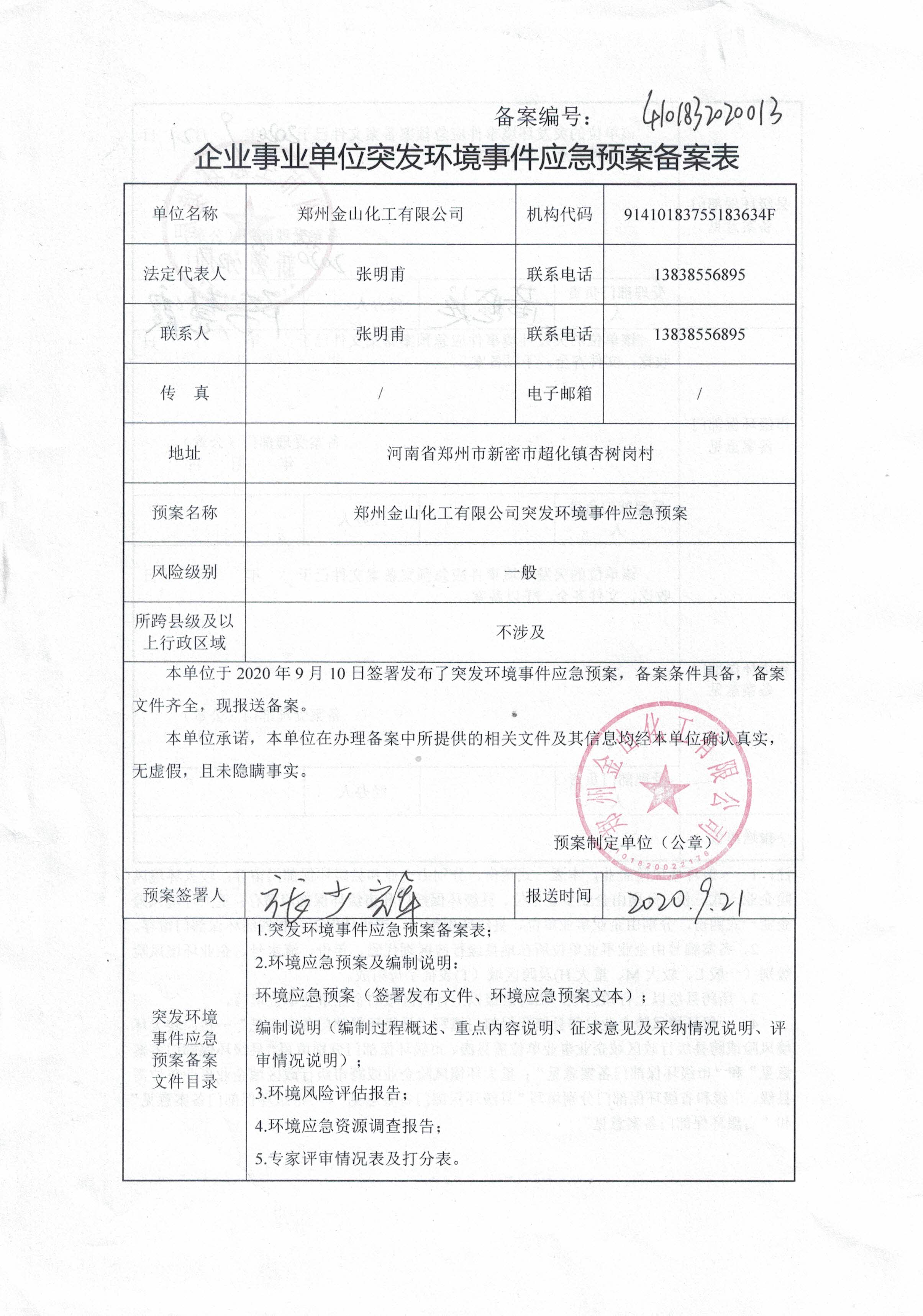 新密市企业事业单位突发环境事件应急预案备案表4101832020013