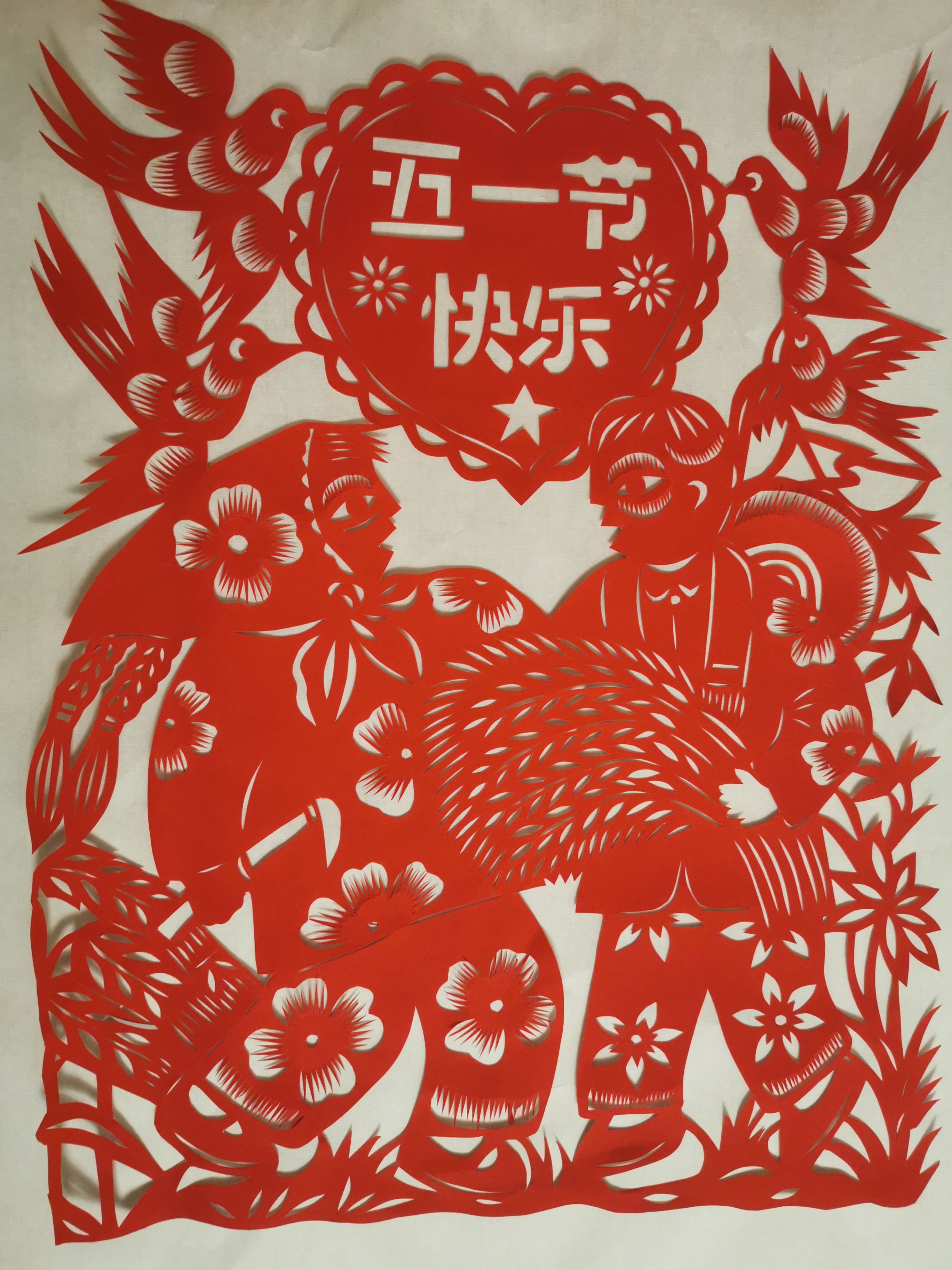 在“五一”劳动节来临之际,我市郑州市级非物质文化遗产剪纸项目代表性传承人雷改转老师,用一双巧手,裁剪出一幅幅“迎五一·庆劳动”的佳作,与广大市民一起欢庆劳动节!