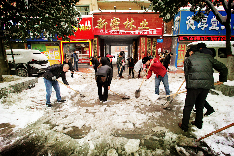 11月23日上午,我市迎来2016年第一场雪,林业局组织全体干部职工清扫机关大院、门前积雪。