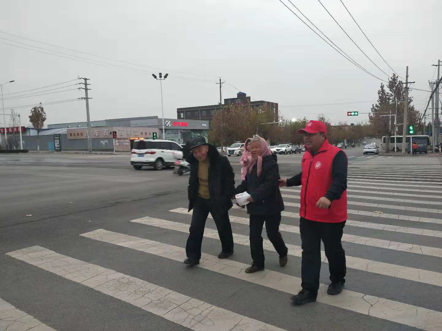 “大爷,大娘,还有两秒钟变绿灯才可以走,不要急,注意安全。”农机局志愿者钱晓明直接拦住两位老人,等绿灯后,他搀扶着两位老人过了马路。看到两位老人平安过马路,钱晓明露出了甜甜的笑容。