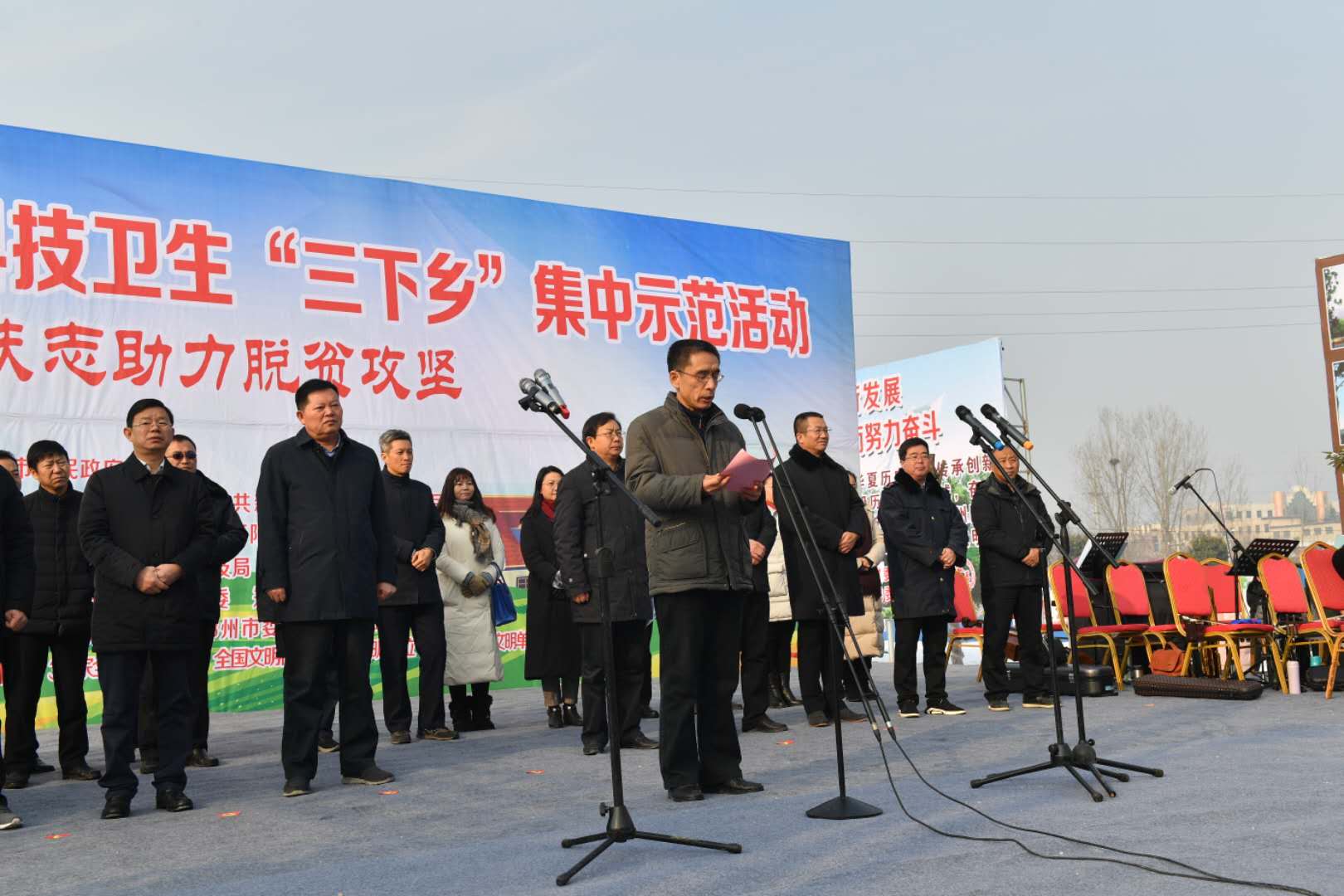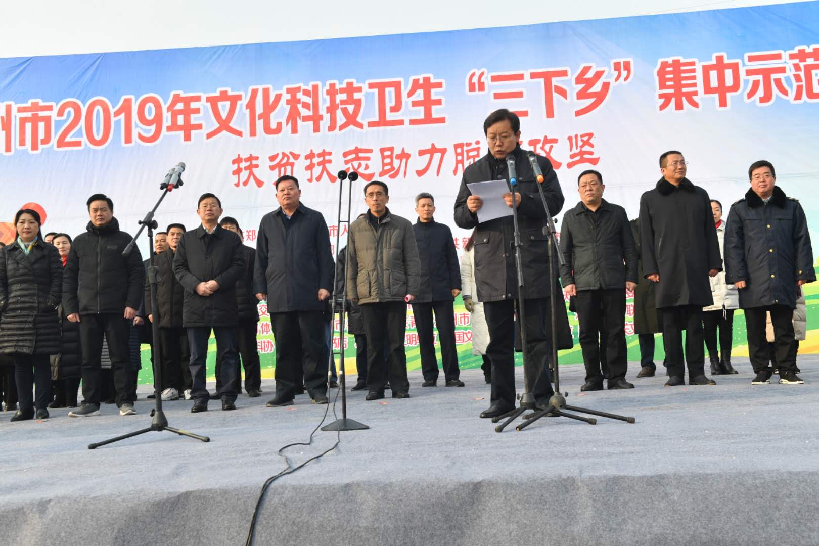 1月10日,由市委宣传部、市文明办主办的郑州市2019年文化科技卫生"三下乡"集中示范活动启动仪式在新密市平陌镇葛沟村文化广场举行,标志着2019年全市"三下乡"活动正式拉开帷幕。市委常委、副市长谷保中出席。