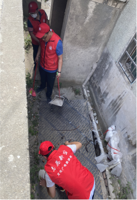 党员志愿者们在楼院长的带领下带着工具,不怕脏不怕累,清理垃圾杂物,先将楼前楼后的生活垃圾清理干净,又深入社区门洞,捡垃圾、拾烟头 清理小广告、路面杂草、楼道护栏、垃圾桶等。