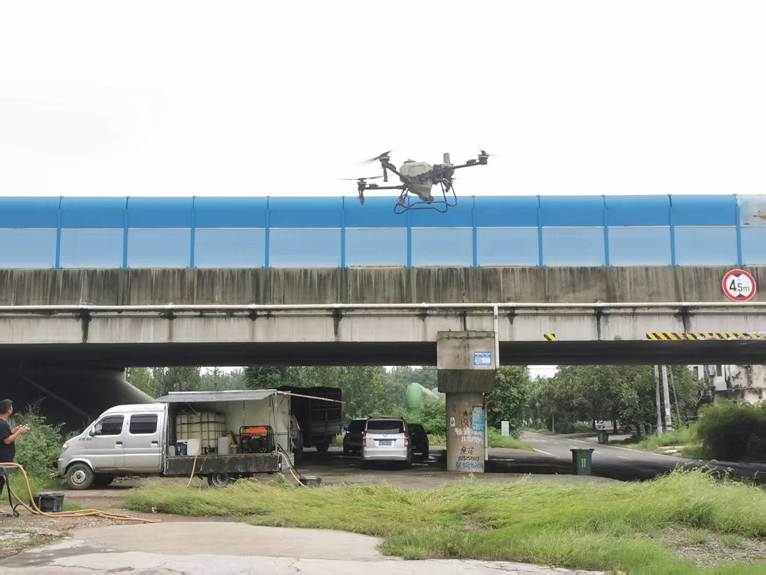 飞防作业主要针对美国白蛾第3代幼虫及杨树食叶害虫等重点林业有害生物,飞防区域覆盖我市高速公路、省道、主要廊道两侧的防护林带及成片林地,采用低空飞行喷洒生物药剂的方式,确保防治无死角。作业选用高效低毒且环保的25%甲维·灭幼脲悬浮剂,最大限度减少对生态环境及周边生物的影响。