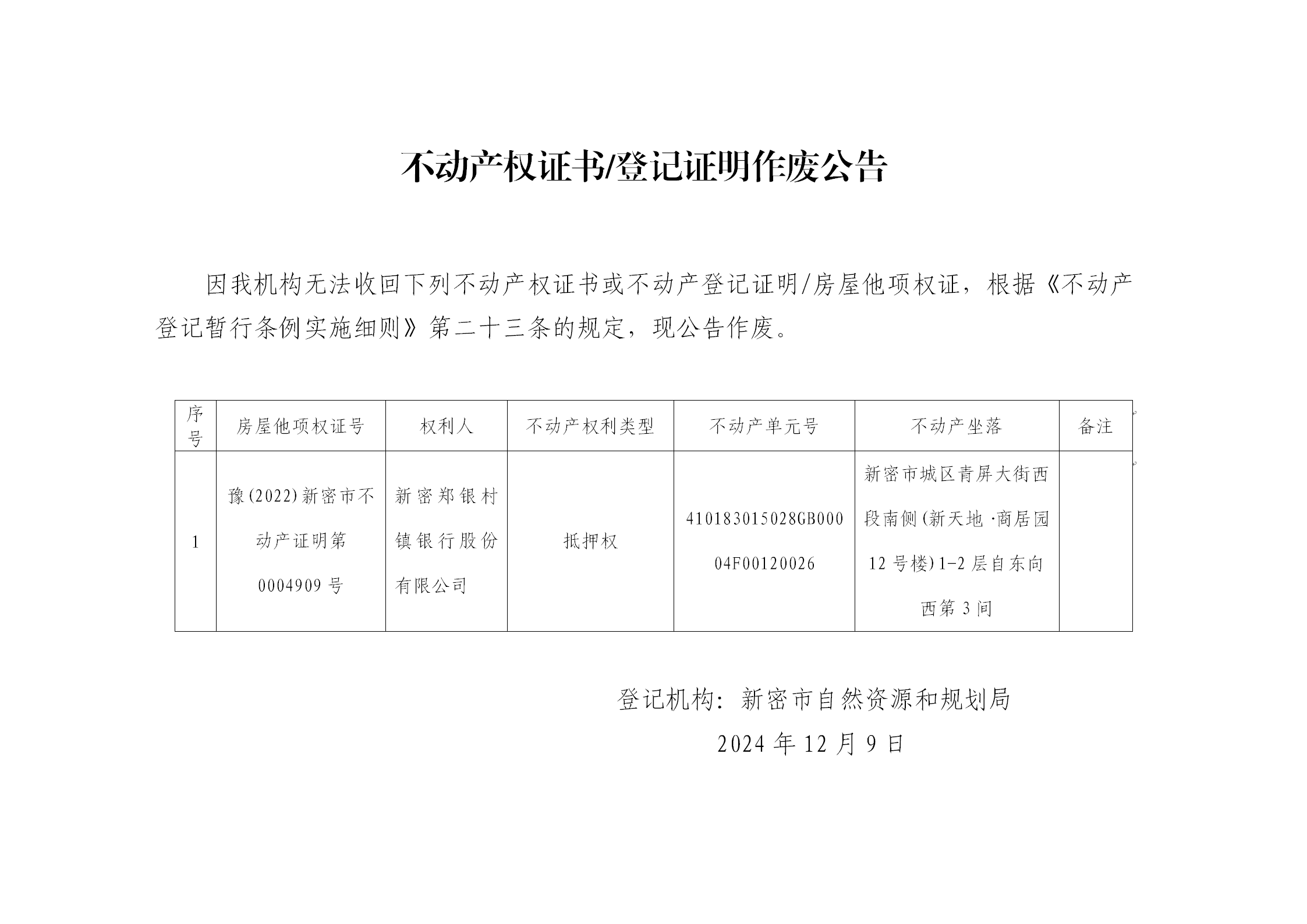 不动产登记证明作废公告